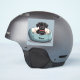 Black Dachshund Sitting in Dog Bed Customize Name Sticker.