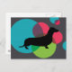 Black dachshund with bright dot pattern postcard