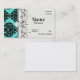 black damask elegance on aqua blue business card