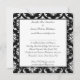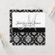 stylish Black and White Floral Damask Wedding Invitation with modern, simple monogram and names design on the front. On the back invitation text shows an example of text which allows each invitation to be personalized by handwriting the name of each guest in the space provided. Please do NOT choose the metallic paper stock, as it is more difficult to write on this glossy surface. Layout design by Elke Clarke© 2009. Graphics licensed for use. Need help or would like a different colour damask please contact luxuryweddinginvitations@gmail.com