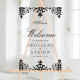 Elegant wedding welcome sign featuring a beautiful damask design.