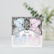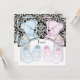Adorable black damask, pink and blue teddy bears, baby bottles and booties baby boy and baby girl twin shower invitation. Add your details to the front and/or back of this cute teddy bear twin baby shower invitation by adding your event details, font style, font size & colour, and wording. This adorable design works great for a gender reveal party invitation too!