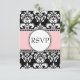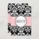 Black Damask Soft Pink RSVP for Square Invitations