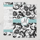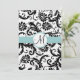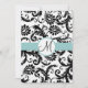 Black Damask Swirls Aqua Trim Wedding Invitation