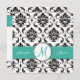 Black Damask Turquoise Monogram Wedding Invitation