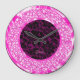 Black Damasks Sparkling Pink Diamonds Glitter Large Clock