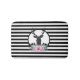 A bathmat with a black deer head with large antlers. Geometric lines inside the face of the deer adds a creative touch. Colourful pink flowers and mint
