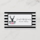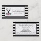 Trendy business cards with a black deer head with large antlers. Geometric lines inside the face of the deer adds a creative touch. Colourful pink flowers and mint