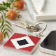 A bold, geometric pattern with a black diamond in the centre surrounded by a white diamond that is flanked by 4 red triangles in the corners.
