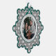 Send warm holiday wishes in style with this elegant preppy Christmas ornament featuring a classic black diamond pattern and turquoise with charming coquette bows that beautifully decorates your family photo.