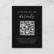 These trendy yet elegant, black wedding detail cards are an easy way for your guests to scan all the information they need about your upcoming wedding. Simply add your QR code so that guests can easily scan it and receive details about driving directions, accommodations, safety measures, reception info, shuttle services, and more. The wedding insert card features a modern and minimalist style, with white handwritten script and classic text. A hand-drawn disco ball is featured in a subtle illustration on the back.