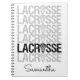 Bold letters spell out the word "LACROSSE" with the "O" replaced by a basket. The slightly distressed design makes a great personalized gift for a player, coach, team or fan. Available in red, orange, yellow, purple, green, blue, grey, black, forest green, navy, maroon, burnt orange, gold and powder blue. Matching products available.