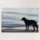 A highly challenging puzzle for dog and puzzle lovers including a black dog longing at shore of a blue wavy sea.