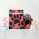 Black Dog Paw Print Custom Name Distressed Red Wrapping Paper