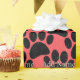 Cartoon dog paw print in black. Custom gift wrapping paper rolls. Red background with distressed effect applied the pattern. Edit name to customize. Good for party decor.