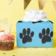 Cartoon dog pawprint in black with light blue background. Faux 3D effect applied to the image.