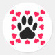 Black Dog Paw Print With Heart Shapes Classic Round Sticker