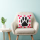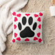 Black Dog Paw Print With Heart Shapes Throw Pillow