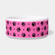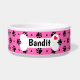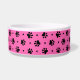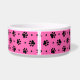 Black dog paw prints and hearts pattern with a custom pink background colour on dog food and water bowls. This pattern can be easily enlarged or reduced to your preference and pick your favourite background colour. Personalize this dish with your dog's name printed on the white dog bone accented with a red heart. Cute gift idea for any dog parent!