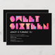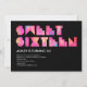These unique Sweet 16 Party Invitations are black with a vibrant hot pink, purple, red, yellow, blue and red design. Great for a Sweet 16 dance party or glow in the dark black light party.