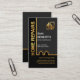 Over at the top is a faux gold house logo that you can use. Your prestigious name and job title sit near the center with a caption remarks to publicize your services just below. To the left wall is a faux gold "home repairs" signage. At the base of the card, you will find the business name and contact details.