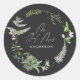 Black elegant modern botanical script wedding pape classic round sticker