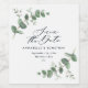 Eucalyptus Greenery foliage modern minimal elegant contemporary garden party Wedding decor save the date gift wine label sticker. Simple contemporary botanical design. Sage green, navy blue, black and white elegant modern colorway suits spring, summer fall, autumn and whiter wedding ceremonies.