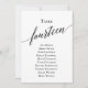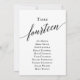 This is an elegant script table number. This table number is double sided. You'll only need to type in the names on one side. They'll be copied automatically on the other one.