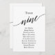 This is an elegant script table number. This table number is double sided. You'll only need to type in the names on one side. They'll be copied automatically on the other one.