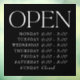 Customize all of the colours and text below "OPEN". "OPEN" graphic can be scaled or edited in colour, or deleted to add your own text.