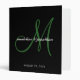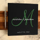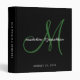 Elegant Black Emerald Green Script Monogram Wedding Album 3 ring binder