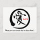 • small artistically rendered word, “Love,” in English next to the “love kanji”