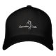 Fits well due to elastic edging, not adjustable. Good qualty material. Good quality embroidering. Subtle lettering (white on beige) just as my wife likes.