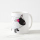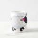 A black faced sheep with lots of white wool and a flower in its hair. This design looks really effective on these Mug