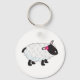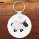 A black faced sheep with lots of white wool and a flower in its hair. This design looks really effective on these Keychain