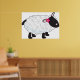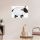 A black faced sheep with lots of white wool and a flower in its hair. This design looks really effective on these Poster