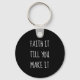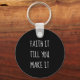 Rather than fake it till you make it, faith it till you make it. As you carry this keychain, let it remind you that you will make it through with faith in the Lord. The text reads "Faith It Till You Make It" on a solid black background.