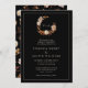 This elegant and modern wedding invitation features a wreath of hand-painted watercolor burnt orange and terracotta leaves, cream and beige dahlias, and beautiful rust-coloured roses on a black background with the bride and groom's monogram. Find matching items in the Black Autumn Romance Collection.