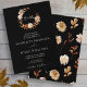 Black Fall Terracotta Monogram Wreath Wedding Invitation. This elegant and rustic wedding invitation features hand-painted watercolor burnt orange and terracotta leaves, cream and beige dahlias, and beautiful rust-coloured roses perfect for a fall or autumn wedding! The back of the invite has a beautiful leaf and floral pattern on a black background that can be easily deleted if you prefer. This design is part of the Autumn Romance collection that can be viewed by clicking on the above collection link.