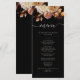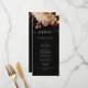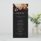 This elegant wedding menu features hand-painted watercolor burnt orange and terracotta leaves, cream and beige dahlias, and beautiful rust-coloured roses on a black background. Find matching items in the Black Autumn Romance Collection.