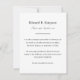 During this hard time let friends and distant family know of a loved one’s passing with this death announcement. This black and white design features a place to insert the photo of the loved one, as well as any information you would like the receiver to know. This is a nice way to suggest a charity that was dear to the deceased and they may like to contribute.
