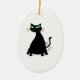 Black Fat Cat With Green Eyes Ceramic Ornament