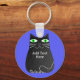 Black Fat Cat With Green Eyes Custom Text Blue Keychain