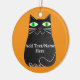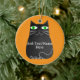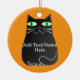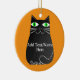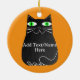 Black Fat Cat With Green Eyes Custom Text Ceramic Ornament