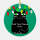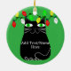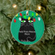 Black Fat Cat With Green Eyes Custom Text Green Ceramic Ornament