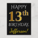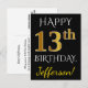 Black, Faux Gold 13th Birthday + Custom Name Postcard