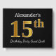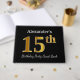 Black, Faux Gold 15th Birthday Party + Custom Name Guest Book