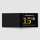 This guest book design features the ordinal number "15th" with a faux gold-like appearance. It also features a custom name, and a black coloured background. It could be used at a party for somebody celebrating their fifteenth birthday. [~Z0000054]