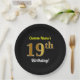 Black, Faux Gold 19th Birthday + Custom Name Paper Plate