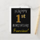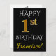 Black, Faux Gold 1st Birthday + Custom Name Postcard